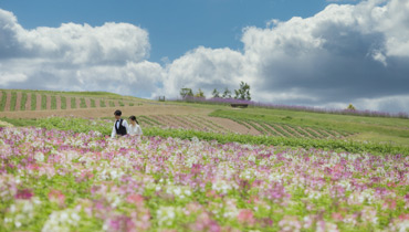 明石海峡・大阪湾を背景に花の大パノラマが展開し、季節により変わる愛らしい花々が楽しめるロケーションです。